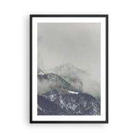 Plagát v čiernom ráme - Hmlisté hory s tajomnou atmosférou - 50x70cm - Zahmlené údolie - Moderná nástenná dekorácia do obývacej izby a spálne ARTTOR