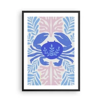 Plagát v čiernom ráme - Dekoratívny modrý krab obklopený morskými rastlinami. - 50x70cm - Ako morský kvet - Moderná nástenná dekorácia do obývacej izby a spálne ARTTOR