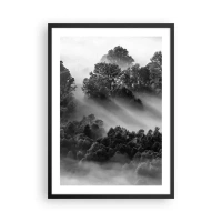 Plagát v čiernom ráme - Hmlistý les v odtieňoch čiernej a bielej - 50x70cm - Prebúdzanie zo spánku - Moderná nástenná dekorácia do obývacej izby a spálne ARTTOR