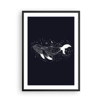 Plagát v čiernom ráme - Vesmírna veľryba v grafickom štýle na čiernom pozadí - 50x70cm - V oceáne vesmíru - Moderná nástenná dekorácia do obývacej izby a spálne ARTTOR
