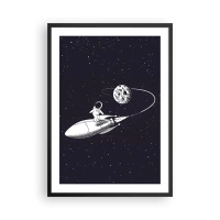 Plagát v čiernom ráme - Astronaut stojaci na rakete letiacej vo vesmíre - 50x70cm - Vesmírny surfista - Moderná nástenná dekorácia do obývacej izby a spálne ARTTOR