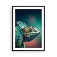 Plagát v čiernom ráme - Farebný chameleón na výraznom pozadí - 50x70cm - Vidíš ma? To nie je dobre… - Moderná nástenná dekorácia do obývacej izby a spálne ARTTOR