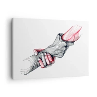 Obraz na plátne - Umelecké ruky držiace sa za seba v minimalistickom štýle - 70x50cm - Ste v dobrých rukách - Moderná nástenná dekorácia do obývacej izby a spálne ARTTOR