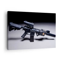 Obraz na plátne - Moderná puška v čiernej farbe na tmavom pozadí - 70x50cm - Temný rytier - Moderná nástenná dekorácia do obývacej izby a spálne ARTTOR