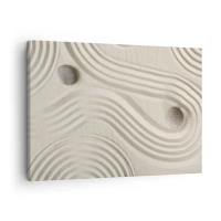 Obraz na plátne - Minimalistický zenový dizajn s pieskom a kameňmi - 70x50cm - Dotyk tepla - Moderná nástenná dekorácia do obývacej izby a spálne ARTTOR