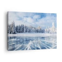 Obraz na plátne - Zamrznuté jazero obklopené zasneženým lesom - 70x50cm - Oslnivý a kryštalický pohľad - Moderná nástenná dekorácia do obývacej izby a spálne ARTTOR