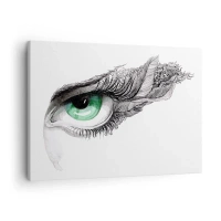 Obraz na plátne - Umelecké oko so zelenou dúhovkou a detailmi kresby - 70x50cm - Krásna a pripravená zaútočiť - Moderná nástenná dekorácia do obývacej izby a spálne ARTTOR