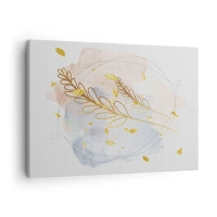 Obraz na plátne - Jemný motív zlatých listov na pastelovom pozadí s detailmi akvarelu. - 70x50cm - Zlatý závan - Moderná nástenná dekorácia do obývacej izby a spálne ARTTOR