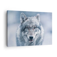 Obraz na plátne - Vlk s intenzívnym pohľadom v zimnej krajine - 70x50cm - Prijmete túto výzvu? - Moderná nástenná dekorácia do obývacej izby a spálne ARTTOR