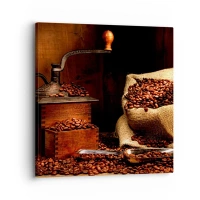 Obraz na plátne - Zátišie so zrnkami kávy a mlynčekom - 30x30 cm