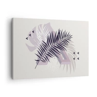 Obraz na plátne - Tropické listy v odtieňoch ružovej a modrej - 70x50cm - Tropy v ružovej a modrej - Moderná nástenná dekorácia do obývacej izby a spálne ARTTOR