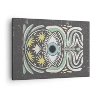 Obraz na plátne - Symbolické oko obklopené abstraktnými vzormi - 70x50cm - Kmeňové rituály - Moderná nástenná dekorácia do obývacej izby a spálne ARTTOR