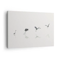 Obraz na plátne - Štyri siluety vtákov sa odrážajú v pokojnej vode - 70x50cm - Štyri jednoduché kroky - Moderná nástenná dekorácia do obývacej izby a spálne ARTTOR