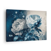 Obraz na plátne - Modré pivonky na jemnom pozadí s jemným vzorom - 70x50cm - Zhodný pár - Moderná nástenná dekorácia do obývacej izby a spálne ARTTOR