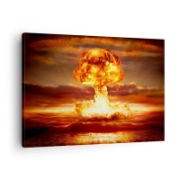 Obraz na plátne - Výbuch hubového oblaku na pozadí západu slnka - 70x50cm - A nastane koniec - Moderná nástenná dekorácia do obývacej izby a spálne ARTTOR