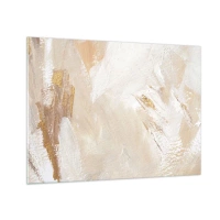 Obraz na skle - Béžová a biela abstrakcia so zlatými akcentmi - 70x50cm - Pastelová kompozícia - Moderná nástenná dekorácia do obývacej izby a spálne ARTTOR