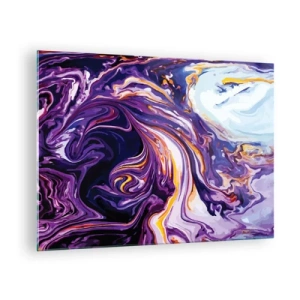 Obraz na skle - Abstraktná maľba v odtieňoch fialovej a bielej - 70x50cm - Keď fúka slnečný vietor - Moderná nástenná dekorácia do obývacej izby a spálne ARTTOR