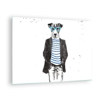 Obraz na skle - Ilustrácia psa v námorníckej košeli a okuliaroch na bielom pozadí - 70x50cm - Maxipes - Moderná nástenná dekorácia do obývacej izby a spálne ARTTOR