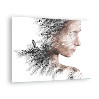 Obraz na skle - Portrét ženy s konármi v pozadí - 70x50cm - Duch lesa - Moderná nástenná dekorácia do obývacej izby a spálne ARTTOR