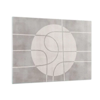 Obraz na skle - Béžové čiary a kruhy vytvárajúce geometrickú kompozíciu - 70x50cm - Kruhovo a priamo - Moderná nástenná dekorácia do obývacej izby a spálne ARTTOR