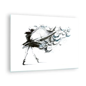 Obraz na skle - Tanečník v pohybe s vznášajúcimi sa vtákmi - 70x50cm - Mágia hudby uvoľňuje od kúzla - Moderná nástenná dekorácia do obývacej izby a spálne ARTTOR