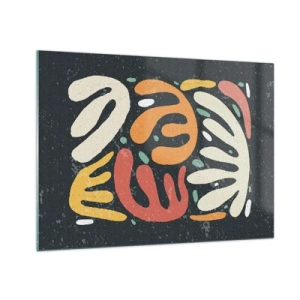 Obraz na skle - Farebné organické tvary na tmavom pozadí v abstraktnom štýle. - 70x50cm - Kompozícia – hneď ťa chytím - Moderná nástenná dekorácia do obývacej izby a spálne ARTTOR