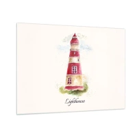 Obraz na skle - Akvarelový maják s nápisom Maják - 70x50cm - Tu je vždy počasie - Moderná nástenná dekorácia do obývacej izby a spálne ARTTOR