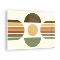 Obraz na skle - Abstraktné geometrické tvary v tlmených farbách s kruhmi a čiarami - 70x50cm - Podstata vecí - Moderná nástenná dekorácia do obývacej izby a spálne ARTTOR