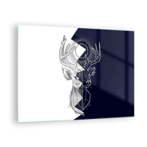 Obraz na skle - Geometrická kresba jeleňa na čiernobielom pozadí - 70x50cm - Boj a jednota opakov - Moderná nástenná dekorácia do obývacej izby a spálne ARTTOR