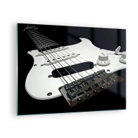Obraz na skle - Detailný záber bielej elektrickej gitary na tmavom pozadí - 70x50cm - Zvuk skrytý v bielej - Moderná nástenná dekorácia do obývacej izby a spálne ARTTOR