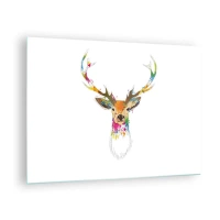Obraz na skle - Farebná silueta jeleňa na bielom pozadí v abstraktnom štýle - 70x50cm - Jemné jelenča vykúpané vo farbe - Moderná nástenná dekorácia do obývacej izby a spálne ARTTOR