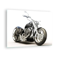 Obraz na skle - Čierny chopper motocykel na svetlom pozadí - 70x50cm - Sila s charakterom - Moderná nástenná dekorácia do obývacej izby a spálne ARTTOR