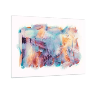 Obraz na skle - Farebné ťahy štetcom v pastelovej abstrakcii - 70x50cm - Farebný neporiadok - Moderná nástenná dekorácia do obývacej izby a spálne ARTTOR