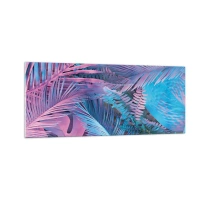 Obraz na skle - Tropy v ružovej a modrej - 100x40 cm