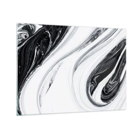 Obraz na skle - Čiernobiele vírivé čiary pripomínajúce mramor v abstraktnom štýle - 70x50cm - Spojenie protikladov - Moderná nástenná dekorácia do obývacej izby a spálne ARTTOR