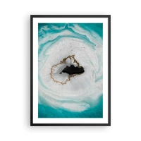 Plagát v čiernom ráme - Abstraktný motív v tyrkysových a bielych odtieňoch so zlatým nádychom - 50x70cm - Preniknúť dovnútra - Moderná nástenná dekorácia do obývacej izby a spálne ARTTOR