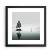 Plagát v čiernom ráme - Osamelý strom na ostrove s odrazom vo vode - 50x70cm - Snívanie - Moderná nástenná dekorácia do obývacej izby a spálne ARTTOR