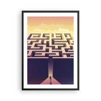 Plagát v čiernom ráme - Minimalistické bludisko v čiernej a bielej farbe - 50x70cm - Osamelosť na vrchole - Moderná nástenná dekorácia do obývacej izby a spálne ARTTOR