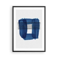 Plagát v čiernom ráme - Abstraktná kompozícia v odtieňoch modrej - 50x70cm - Modročierna kompozícia - Moderná nástenná dekorácia do obývacej izby a spálne ARTTOR