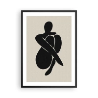Plagát v čiernom ráme - Abstraktná postava v póze s rukami omotanými okolo tela, čiernobiela ilustrácia - 50x70cm - Vo vlastnom objatí - Moderná nástenná dekorácia do obývacej izby a spálne ARTTOR