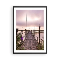 Plagát v čiernom ráme - Bambusový most cez pokojnú vodu za súmraku - 50x70cm - Pokoj a pohoda Ázie - Moderná nástenná dekorácia do obývacej izby a spálne ARTTOR