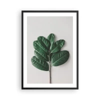 Plagát v čiernom ráme - Konár s tmavozelenými listami na svetlom pozadí - 50x70cm - Kresba samotnej prírody - Moderná nástenná dekorácia do obývacej izby a spálne ARTTOR