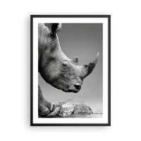 Plagát v čiernom ráme - Čiernobiely detailný záber na hlavu nosorožca - 50x70cm - Nezastaviteľná sila - Moderná nástenná dekorácia do obývacej izby a spálne ARTTOR
