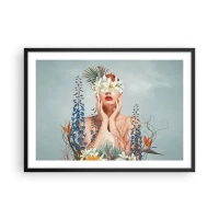 Plagát v čiernom ráme - Žena – kvetina - 70x50 cm