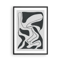 Plagát v čiernom ráme - Čiernobiela abstrakcia s organickými tvarmi - 50x70cm - Abstraktná hra v labyrinte - Moderná nástenná dekorácia do obývacej izby a spálne ARTTOR