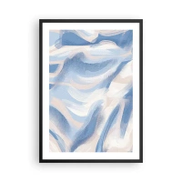 Plagát v čiernom ráme - Abstraktná vlna v odtieňoch modrej a béžovej - 50x70cm - Modré kolísanie - Moderná nástenná dekorácia do obývacej izby a spálne ARTTOR