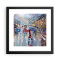 Plagát v čiernom ráme - Daždivé popoludnie v meste - 30x30 cm