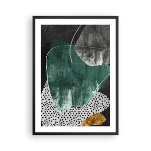 Plagát v čiernom ráme - Abstraktná kompozícia v zelenej a zlatej farbe - 50x70cm - Farebná abstrakcia so zlatou vločkou - Moderná nástenná dekorácia do obývacej izby a spálne ARTTOR