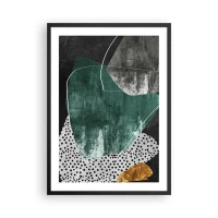 Plagát v čiernom ráme - Abstraktná kompozícia organických, zelených tvarov. - 50x70cm - Abstraktná hra na zelenú - Moderná nástenná dekorácia do obývacej izby a spálne ARTTOR