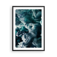 Plagát v čiernom ráme - Abstraktná kompozícia víriacich farieb v odtieňoch zelenej a modrej. - 50x70cm - Pohyb farby - Moderná nástenná dekorácia do obývacej izby a spálne ARTTOR